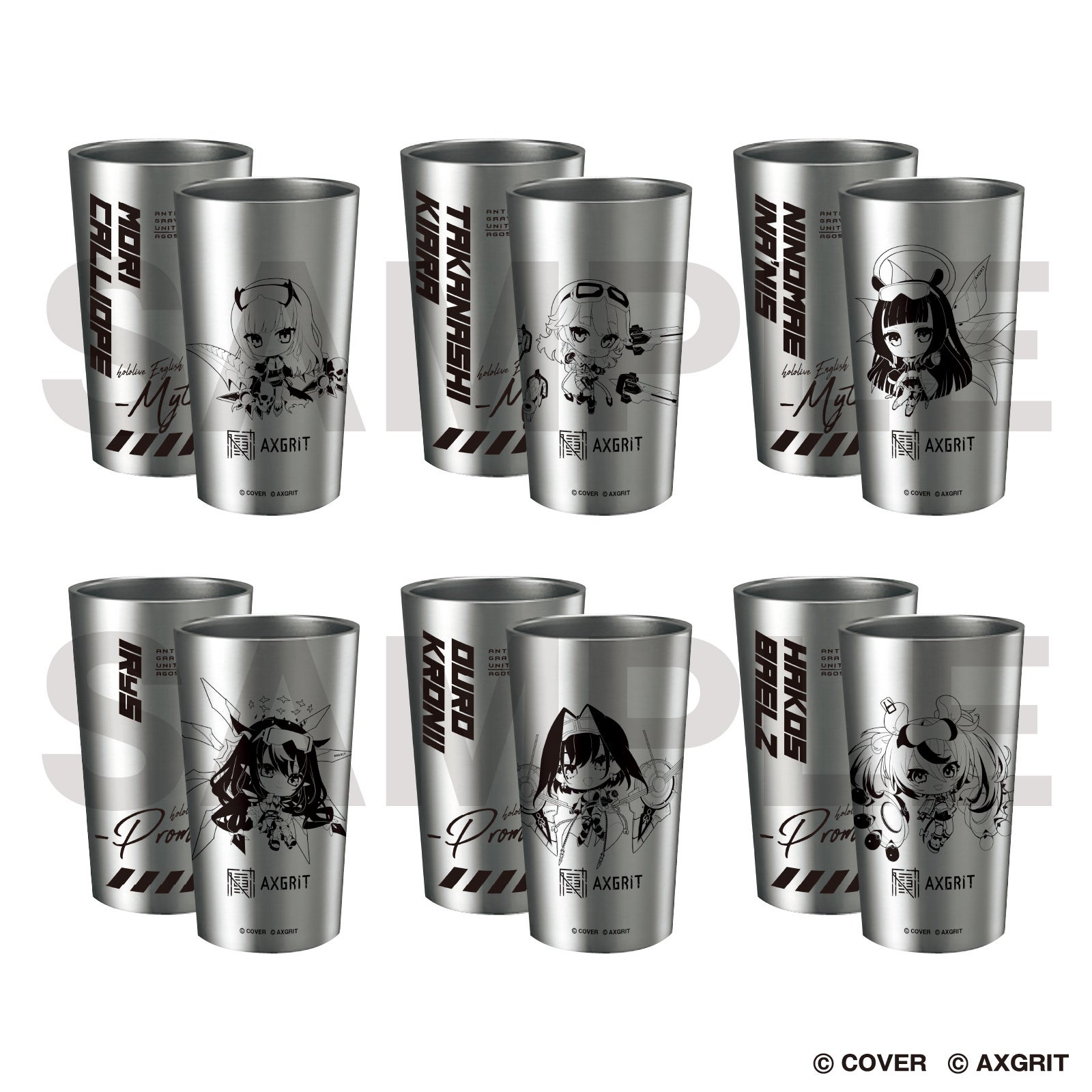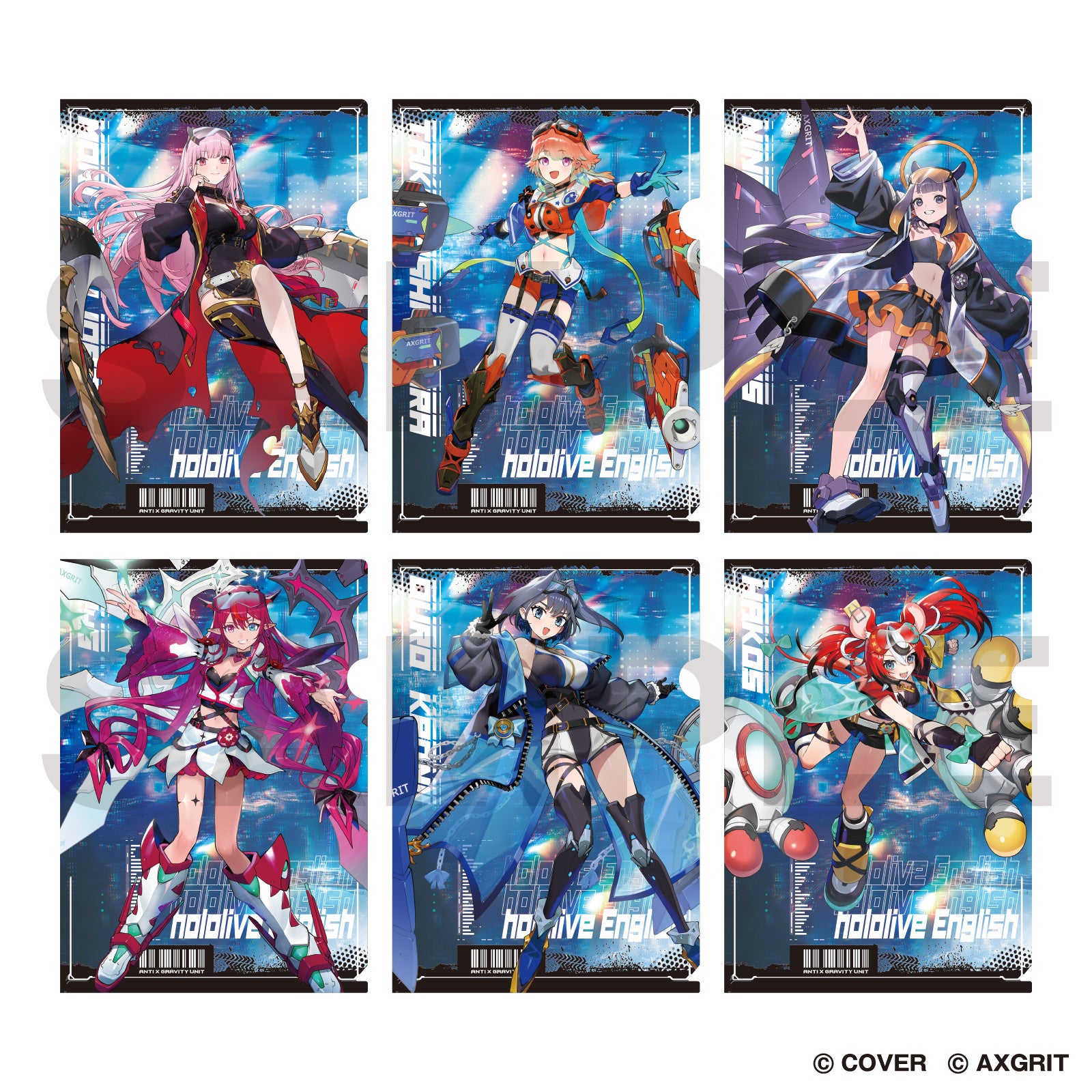 デザインココとIP書店の共同フィギュアブランドAXGRIT 第5弾企画としてAnti × Gravity Unitを身にまとった「ホロライブEnglish  -Myth-&-Promise-」6人の描き下ろしを使用したグッズを販売。