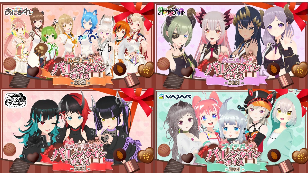 774incは11日、同社が運営するVTuberグループ「有閑喫茶あにまーれ」「ハニーストラップ」「シュガーリリック」「ブイアパ」のそれぞれより、バレンタインボイスを期間限定にて販売すると発表した。価格は各メンバーごとに1500円(税込)。14日12時~4月14日までの販売だ。