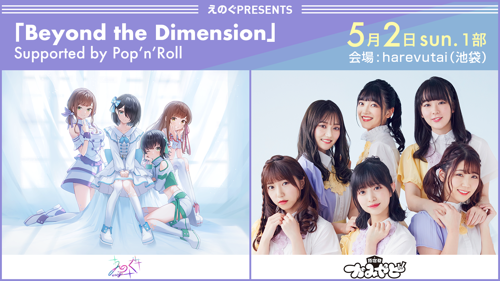 まず、アイドルメディアの「Pop’n’Roll(ポップンロール)」サポートのもと5月1~3日にて計4公演行う「えのぐPresents 『Beyond the Dimension』 Supported by Pop’n’Roll」。えのぐ初となるアイドルとの2MANライブだ。