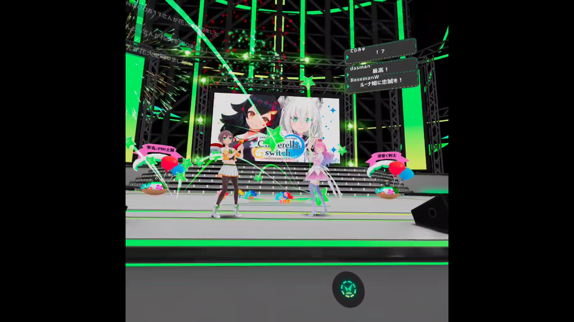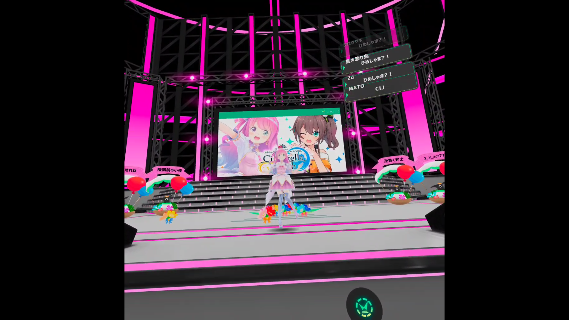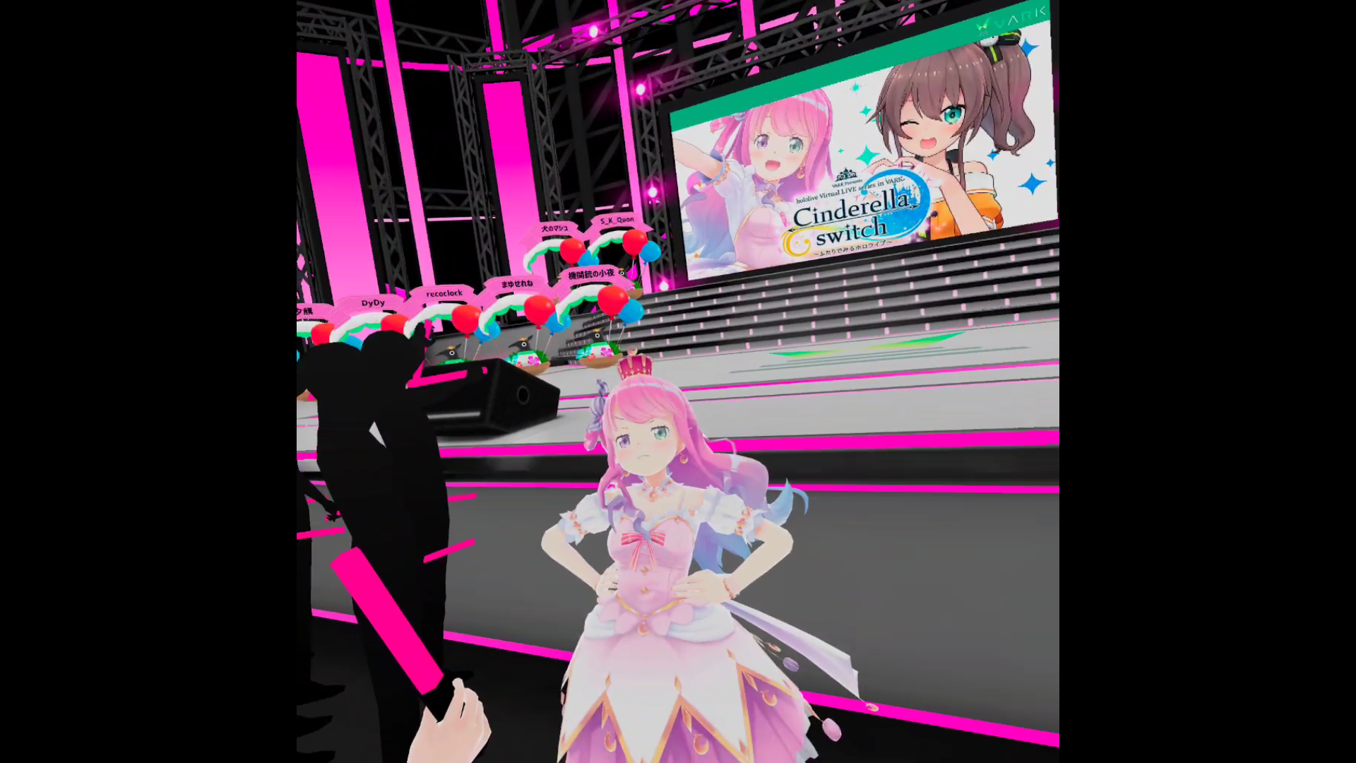 「Cinderella switch ~ふたりでみるホロライブ~」への参加方法は、VRゴーグル(Oculus Quest、Oculus Quest2、PlayStation VRのみ対応)、VARKのスマホアプリ、ニコニコ生放送と3種類あるが、筆者はOculus Quest2で参加した。