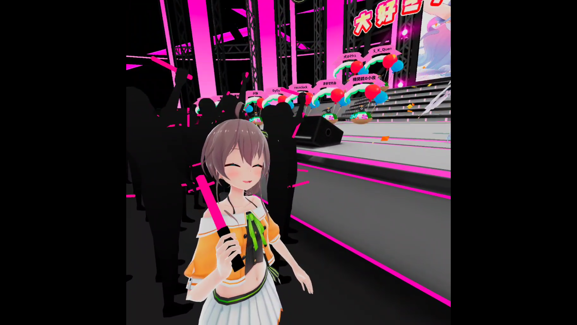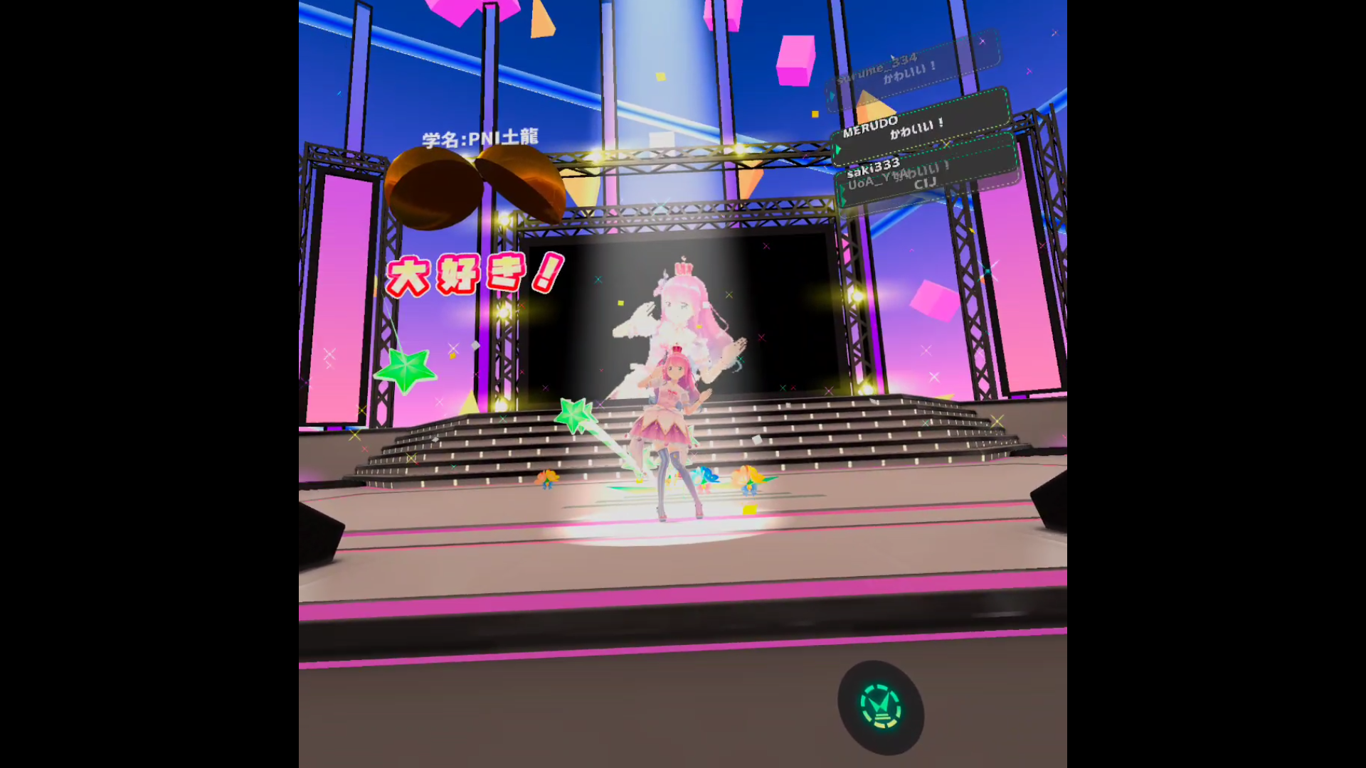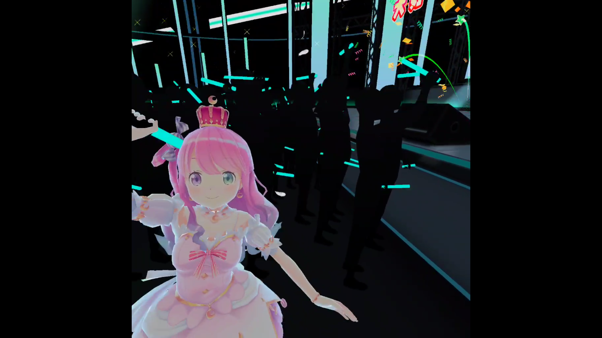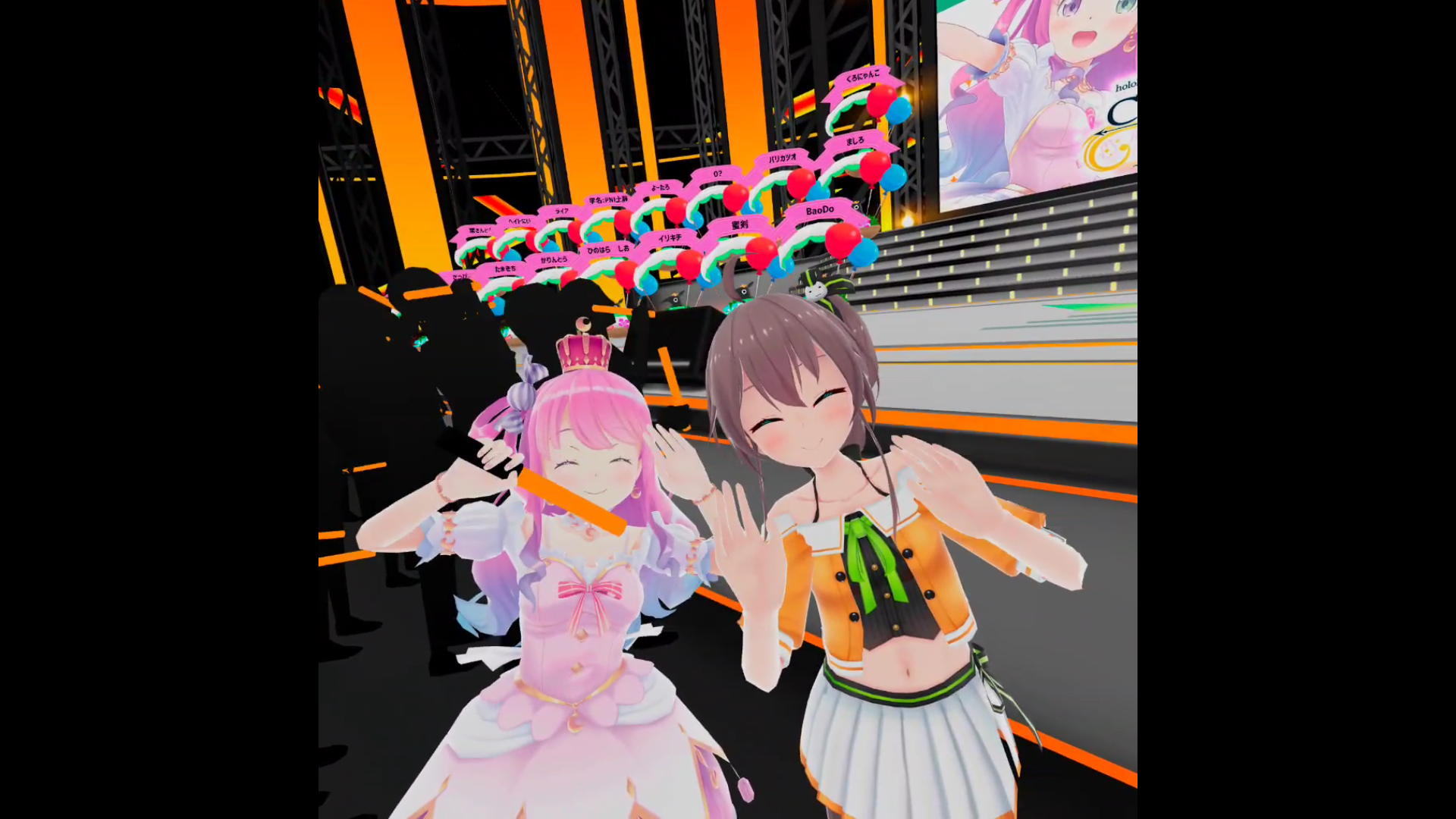 しかし、まつりさんが「私は、今、『好き』って歌ったけど、せっかく隣にいるのだから、ルーナからの『好き』も聞きたいよね~」と突然、無茶振りすると、「変な無茶ぶり、来たのら」「こんなのリハになかったのら。急に来たのら」と激しく動揺。最終的にまつりさんが客席に下りて、手本を見せたら、ルーナ姫も挑戦するというファンにとっては美味しいだけの展開に。まつりさんの照れながらの「大好きだよ」も、ルーナ姫の「大好きなのらよ」もVR空間ならではの距離感バフもかかって、破壊力抜群だった。
