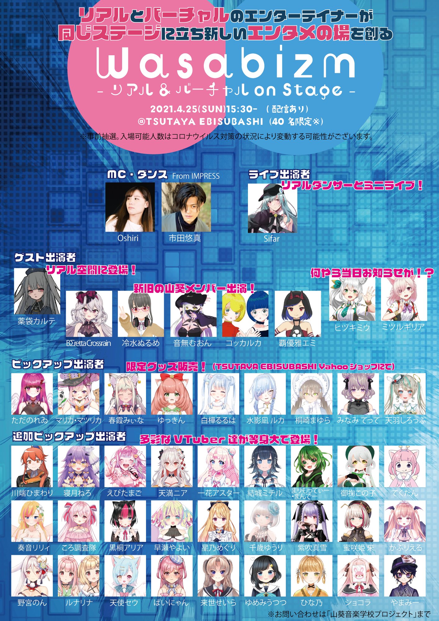 そして、4月25日には、TSUTAYA EBISUBASHI 5階イベントスペースにてライブイベント「Wasabizm – リアル&バーチャル on Stage -」を開催する。新規加入に合わせ本日、音無むおんさん、Sifarさん、冷水ぬるめさん、BΣretta Crossrainさん4名を含む追加出演者情報を発表した。会場は40名の抽選となっており、当日は無料配信をする予定だ。