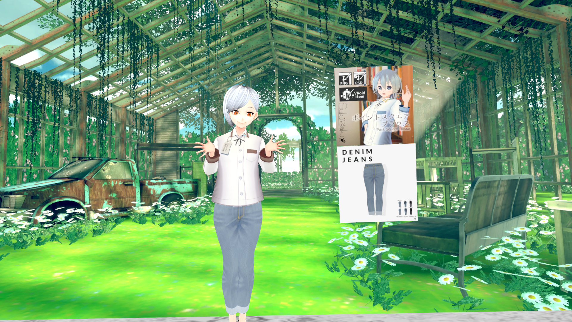 なお、本イベントで展示されている衣装はVRoidモデルを想定したものとなるが、VRoidでないアバターでも試着は可能だ。Twitterでは、今回の出展ショップの1つ「Dust en」のふじさきあくたさんが、「ロポリこん」アバターで試着をする様子をツイートしていた。