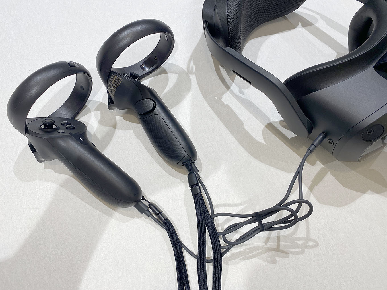 コントローラーはUSB Type-Cでの充電式となっている。このため、VRゴーグルの充電時に付属のType-C to Type-C(×2)の二股ケーブルを使うことで、1つの電源コンセントからVRゴーグルと左右コントローラーを同時に充電できる。ACアダプターによる充電と違って、充電時に複数のコンセントを占有してしまうこともない。