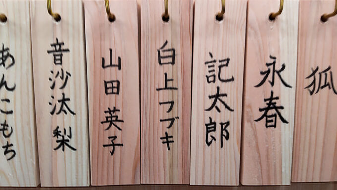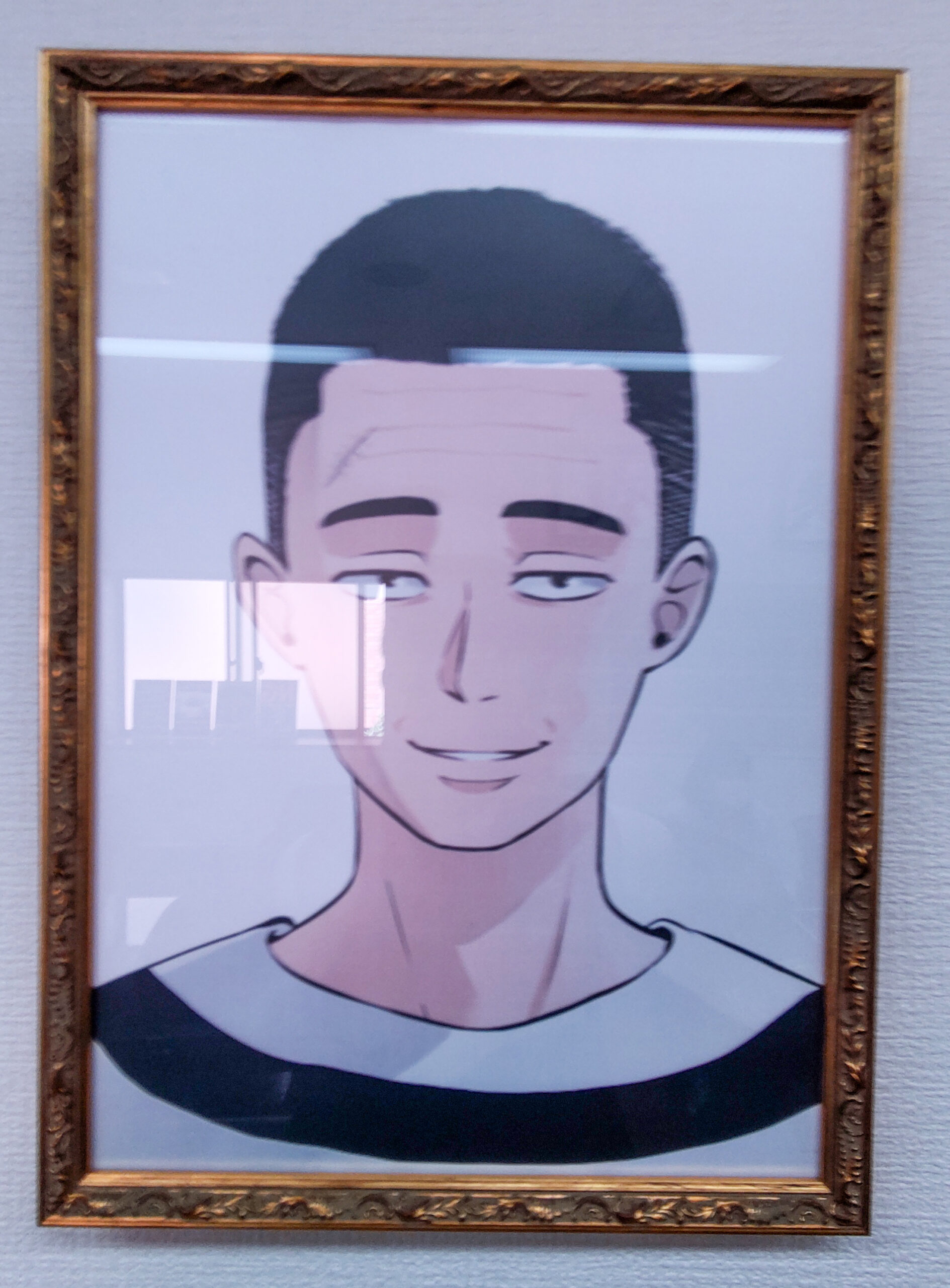 はねる組長の書は、実は今額縁屋に出していてここにはなくて、ここに飾っているのはまた別のものです。それこそ、クラウドファンディングには、白上フブキさんや 由宇霧さんとかちょくちょくVTuberの方にも参加していただいてまして……。ただそれらも本当はイベント開いたりだとか色々したかったのに実現できていないという、もどかしい状況です。
