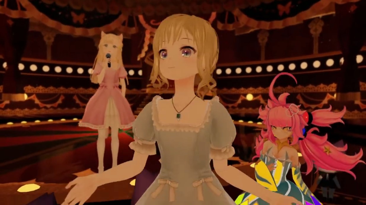 今回、演目の前には、主催である「黒猫洋品店」のうぃりあむさんより、新作の着せ替え用素体「ヴァニーユ」の紹介も行われた。可憐で華奢で、お人形さんのような可愛らしさがあるアバターで、特に瞳が美しい。前回の第1回公演においてフィーチャーされた「桜クロイニャン」Booth)も今後共通の素体へアップデートされる予定で、「黒猫洋品店」が展開していく衣装の基本となる素体第1弾だ。
