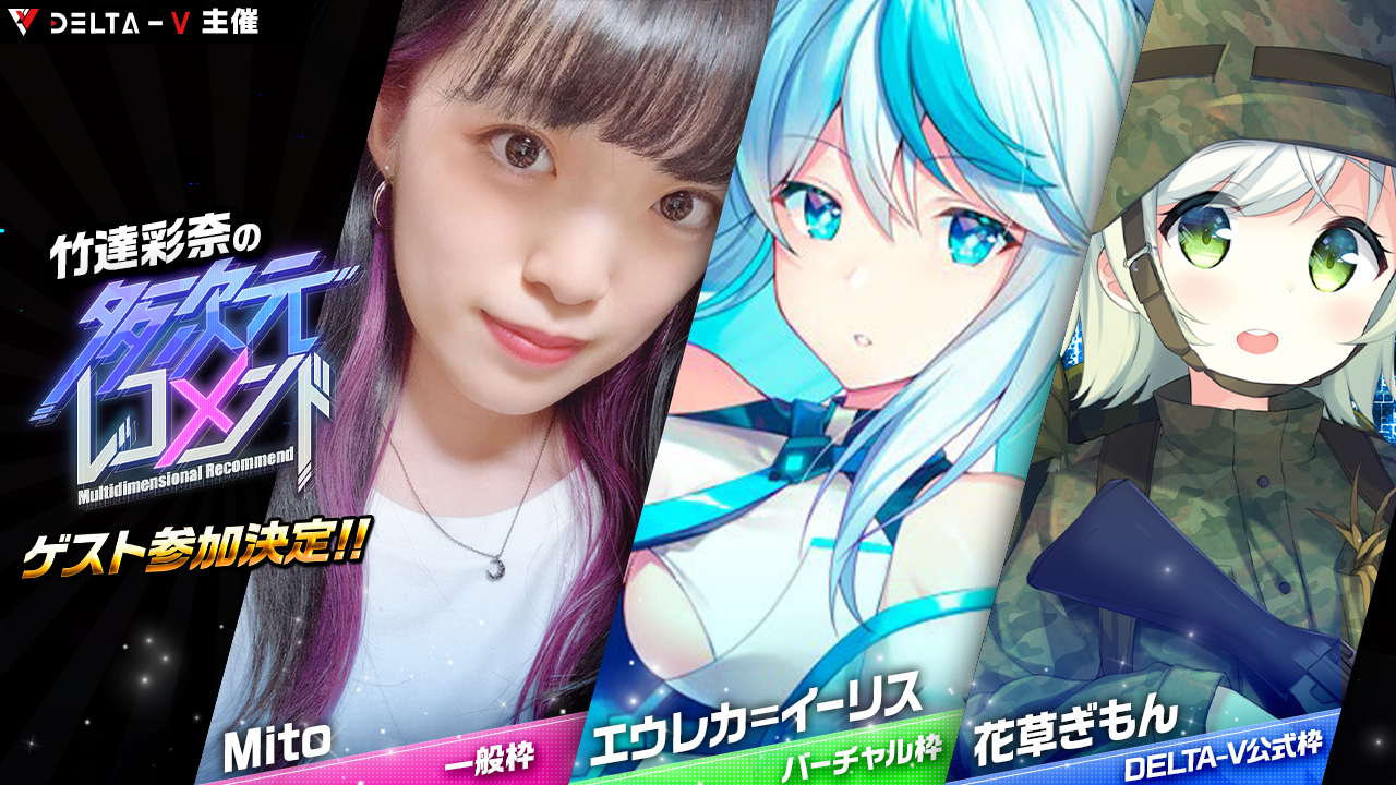 7月10日配信の回では、「一般枠」として歌手・声優を目指すMito、「バーチャル枠」としてエウレカ=イーリス、「DELTA-V枠」として花草ぎもん──の3名がゲストとして登場する。
