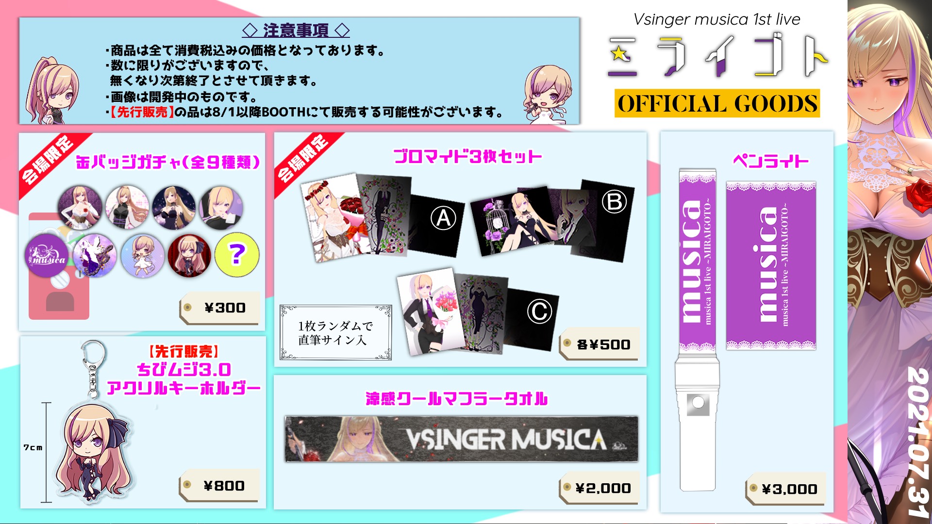 musicaは2019年7月31日にデビューし、芯のある歌声と、持ち前の音感の良さ・発生の良さを武器にこれまでさまざまな楽曲を展開してきた。また、3Dの姿を自作したり、絵を描いたりと歌以外のクリエイティブ活動も積極的に行っている。活動2周年となるタイミングで、夢だったワンマンライブの開催が決定した。