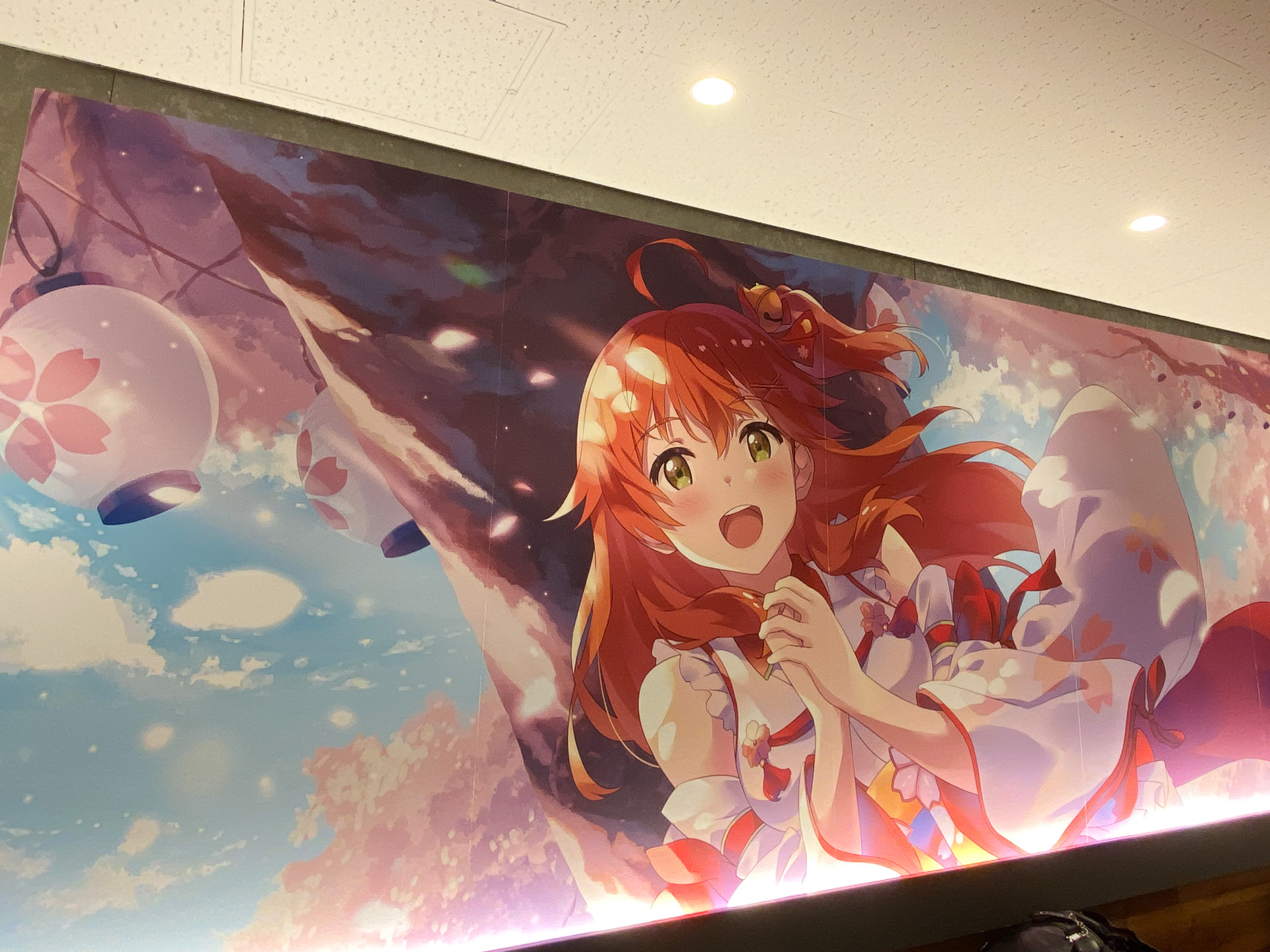 カフェ入り口からおるだん先生が書いた今回のキービジュアルがお出迎え。なお、ステラマップカフェが入るソフマップの店内アナウンスもみこさんの声になっている