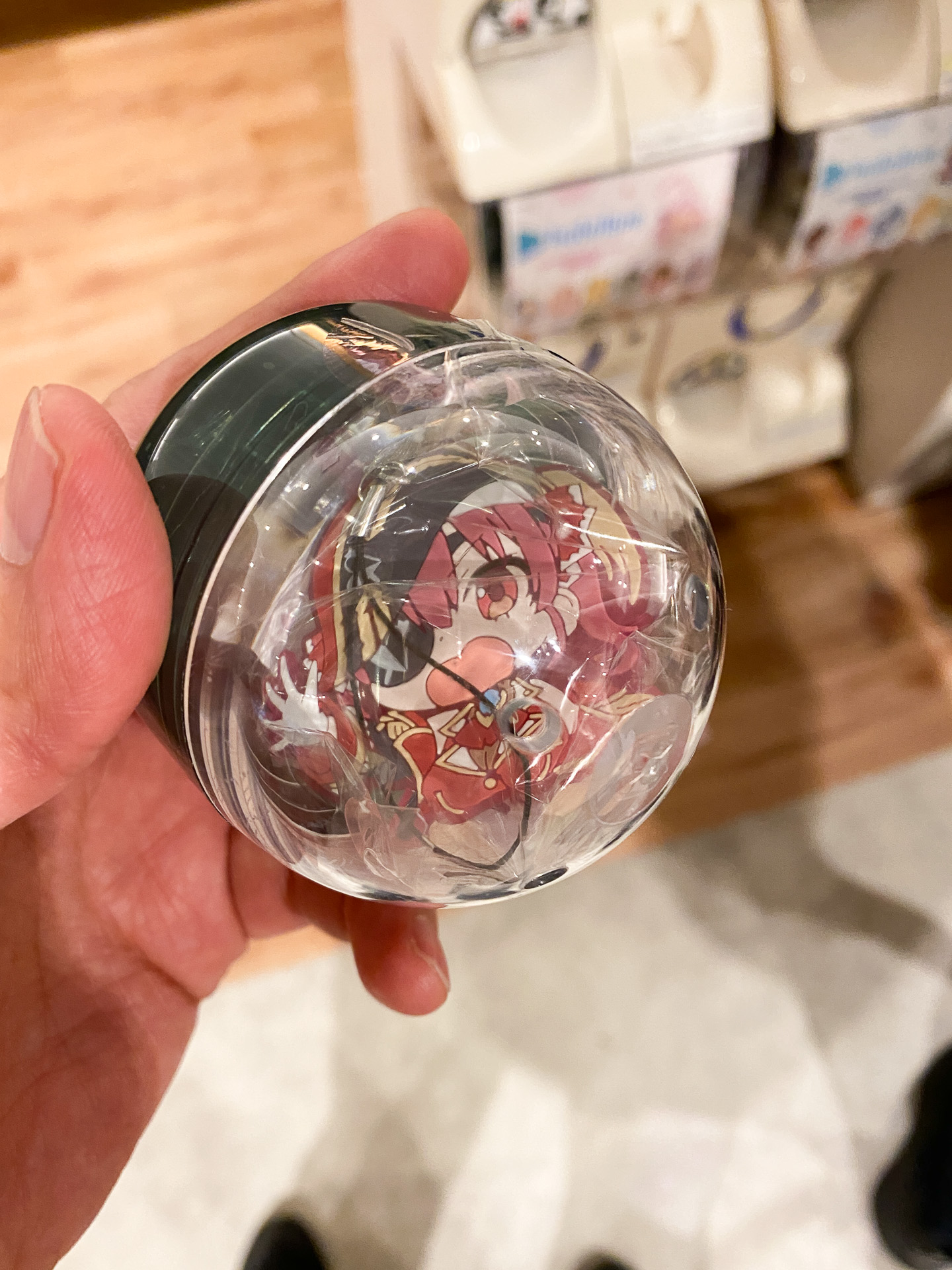お土産にちょうどいいカプセルラバーストラップのガチャも用意。1回300円