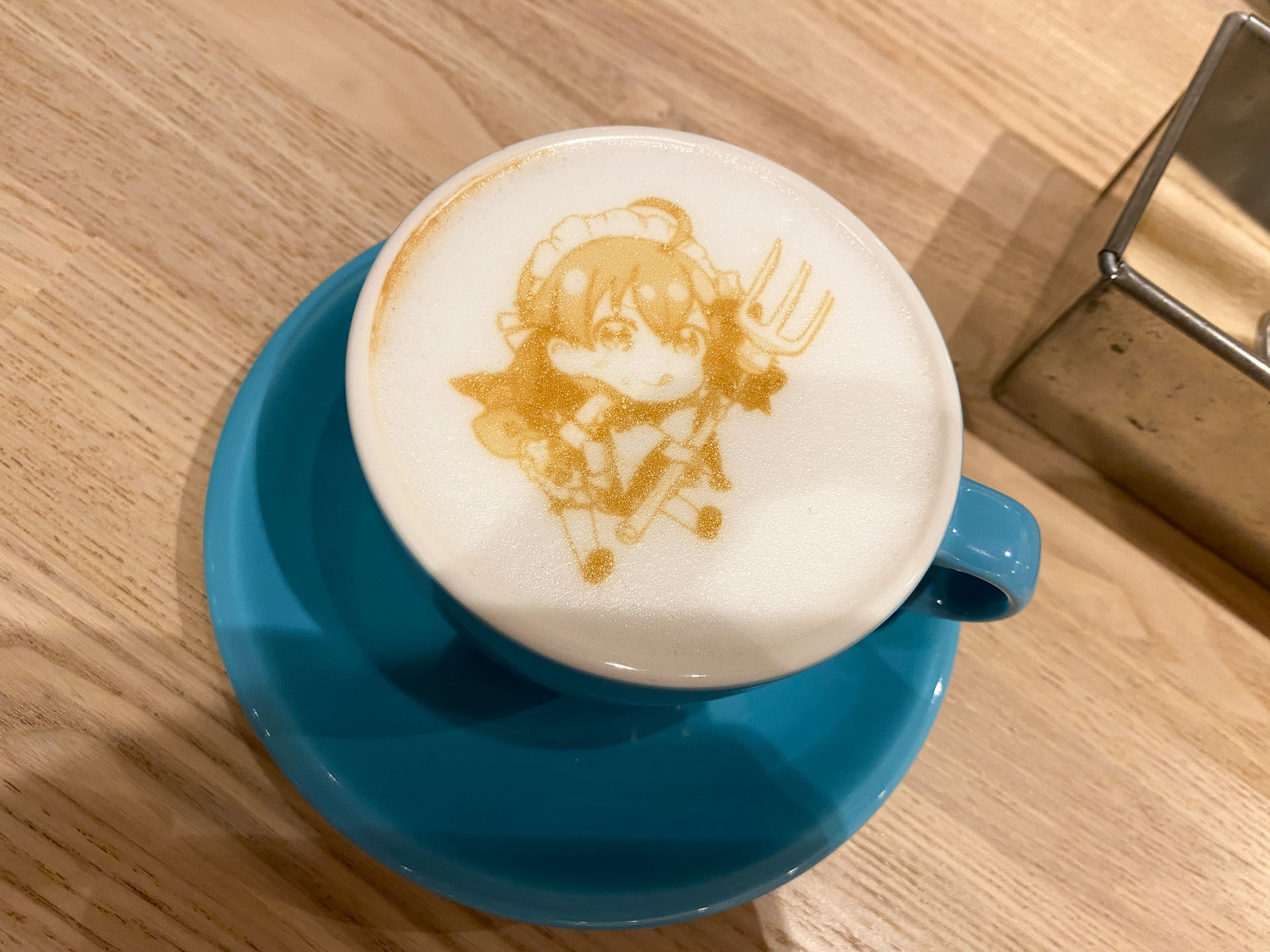 「みこちカフェラテ」(800円)は6種類のラテアートを展開。写真は「フォークをもったみこ」