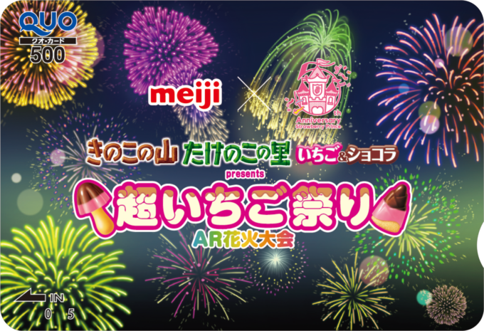 併せて、対象商品の公式Twitterアカウントをフォローし、AR花火大会の写真を「#きのこたけのこ超いちご祭り」を付けて投稿すると、抽選で合計450名にクオカードやオリジナル賞品「きのこたけのこ超いちご祭りセット」が当たる写真投稿キャンペーンも実施する。