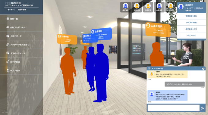 個々のプロジェクトルーム内では、タスク管理やファイル共有が行えますので、グループの共有情報を一元化でき、生産性の向上を期待できる。また、バーチャルヒューマンがナビゲートする総務サービスルームなどを設置することで、社員向けサービスの拡充も期待できる。