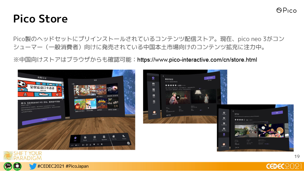 中国本土のコンシューマー市場向け「Pico Store」にもコンテンツ配信が可能