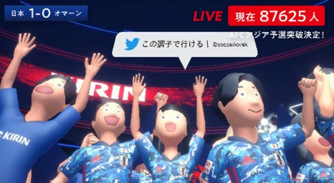 AFCアジア予選の試合中、このスタジアムの様子はキリンサッカー応援Twitter公式アカウント「#届けてキリンみんなで応援チャレンジ」(@kirin_soccer_nc)からライブ配信される。サッカー中継をTVで観戦しながら、戦況に合わせてバーチャルスタジアム内で繰り広げられる群衆の様子を楽しめるほか、ほかのサポーターと一緒に応援している体験ができる「新しい応援」の形を提供する。AFCアジア予選期間のホーム戦全5試合を通じて、10万アバターを集めることを目標としている。