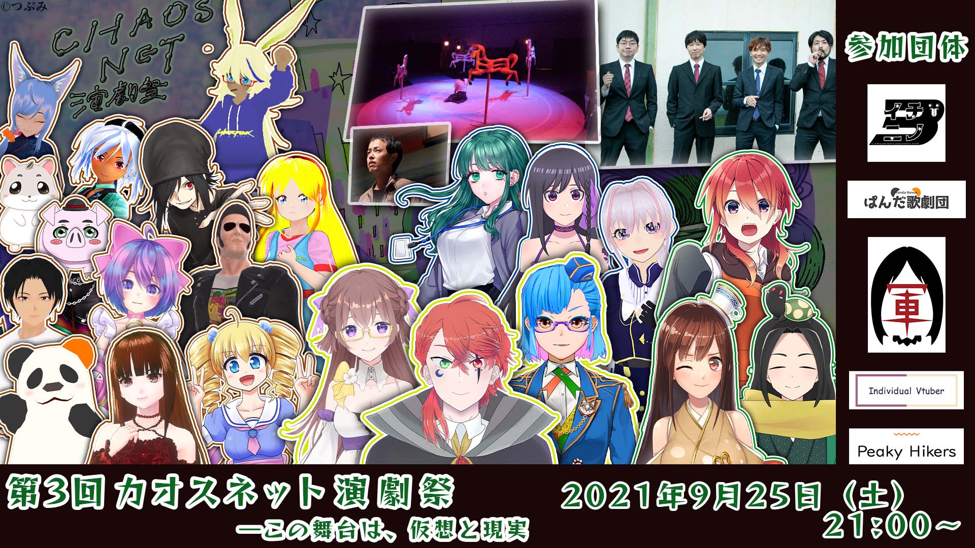 VTuberのメイローとアルピナが運営する演劇団体・Peaky Hikersは、VTuberと日本各地のリアルな演劇団体および役者とのコラボ公演「第3回カオスネット演劇祭」を9月25日にPeaky HikersのYouTubeチャンネルにて開催すると発表した。