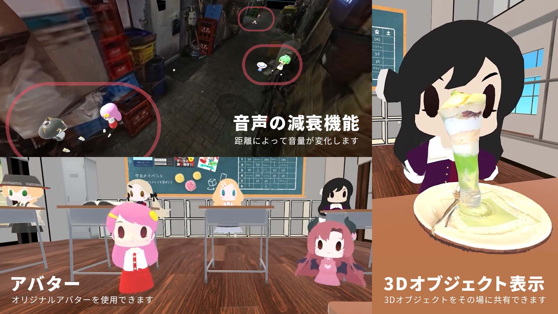 「クラフ特区アカデミー」はPC、スマホ、VR機器からアクセスできる3D空間コミュニケーションプラットフォーム「DOOR」の特性を生かし、場所や端末に制限されない授業を行える。また、3D空間ならではの音声の減衰機能、アバター、3Dオブジェクトの表示により、ビデオミーティングでは困難な表現が可能となり、よりリアルな授業に近い体験が可能だ。