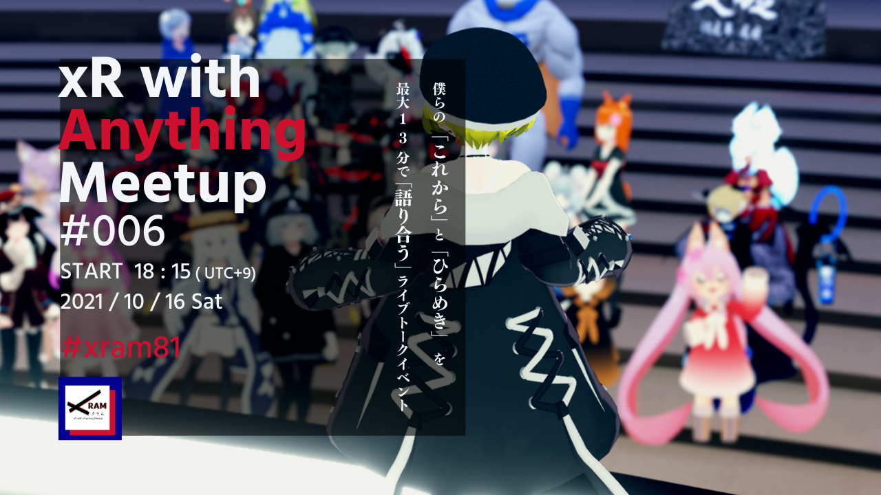 イベント運営団体・xRAM「クラム」は10月23日、オンライン/VR空間でIT、xRやクリエイティブの面白い技術やノウハウを気軽に発表/展示できる勉強会「xR with Anything Meetup #06」を本日18時よりclusterにて開催することを発表した。当日はVR会場ほか参加登録者限定でYoutube配信とdiscordでの懇親会を予定している。こちらのcompassイベントページから参加登録が可能だ。