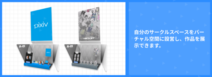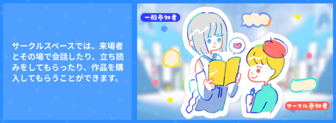 サークルスペースでは、参加者が、その場で作品を立ち読みしたり、気に入った作品を購入することができる。サークル出展者は、ピクシブが運営する創作物の総合マーケット「BOOTH」に登録した作品をNEOKETに出品することが可能だ。