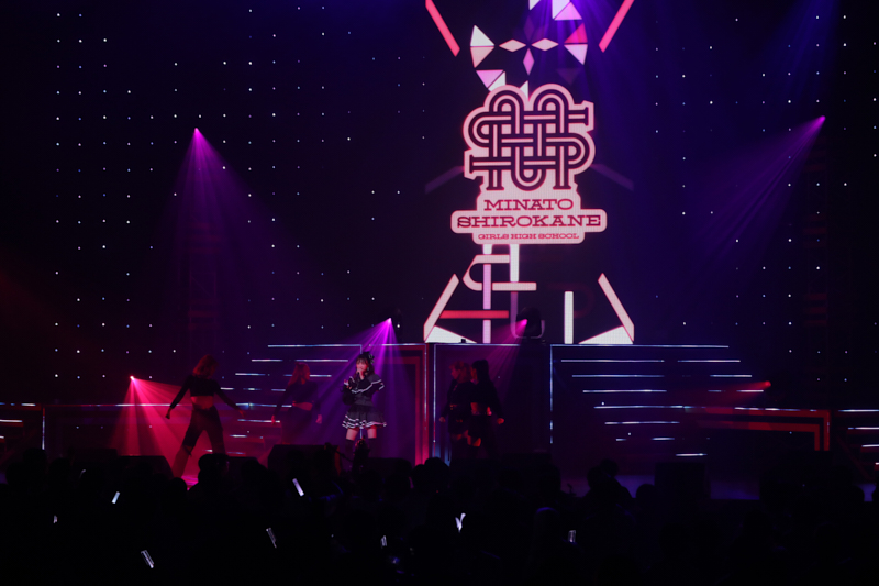 1日目となる30日には秋葉原、原宿、麻布、渋谷のエリアごとに設定された4つの高校のキャストが順番にステージに登場。各高校の「ダンス部」と名付けられたダンサーたちの激しいダンスに合わせて、担当キャラクターの楽曲を歌い上げた。全25曲となるライブの様子をオフィシャル写真で振り返ってみよう。