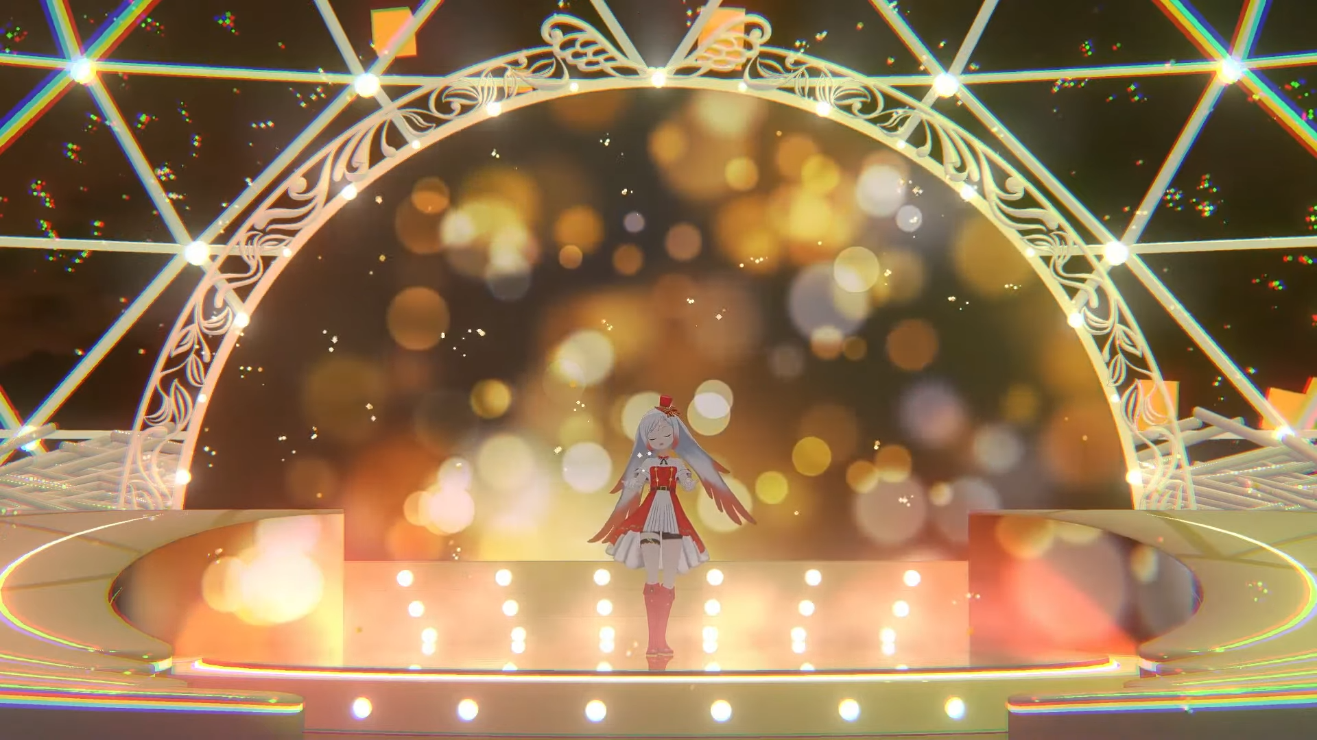 空中に浮かんで話していたのどぐろは、ときなを激励した後、大きな水しぶきを上げながら退場。歌唱中の演出も含めて、バーチャル空間ならではの楽しい演出が随所に見られる。