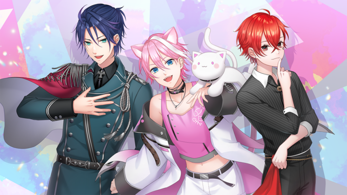 今回デビューする3名は、「ツイキャス100V」の公募から選ばれた初の男子メンバー。ツイキャスで人気のイケボ配信者から、「隣にいたくなる声」の天ヶ瀬あぽす、「化け猫ゲーマー」の桃猫てぃる、「陸軍少佐」の蒼松カイリと、ユニークな個性を持つ3名が加わった。キャラクターデザインは、VTuberなどLive 2D用イラスト制作を主に手がけるイラストレーター・小金井コガネ(@koga_kmdd)氏が担当している。