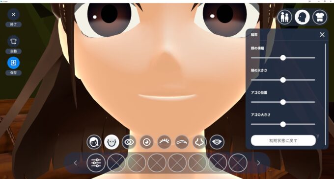最近のゲームのプレイヤーカスタマイズ画面と同じで、基本的には用意されているテンプレートから選択していくだけだ。顔の大きさやアゴの位置など、一部のパーツはスライダーを使って細かな調整が可能だ。