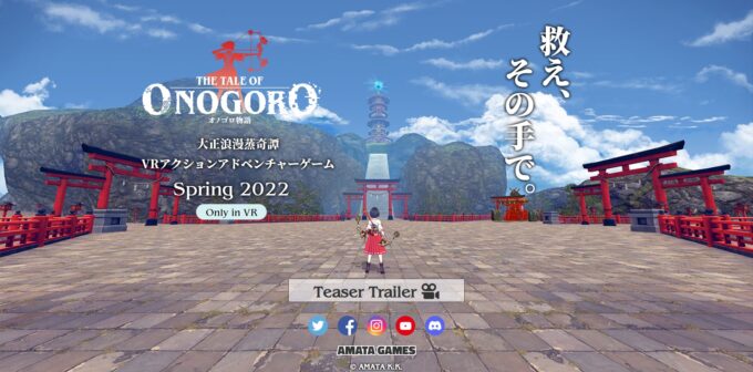 あまたは、本日、新作VRアクションアドベンチャーゲーム「オノゴロ物語 ~The Tale of Onogoro~」を2022年春に発売することを発表し、ティザーサイトを公開した。
