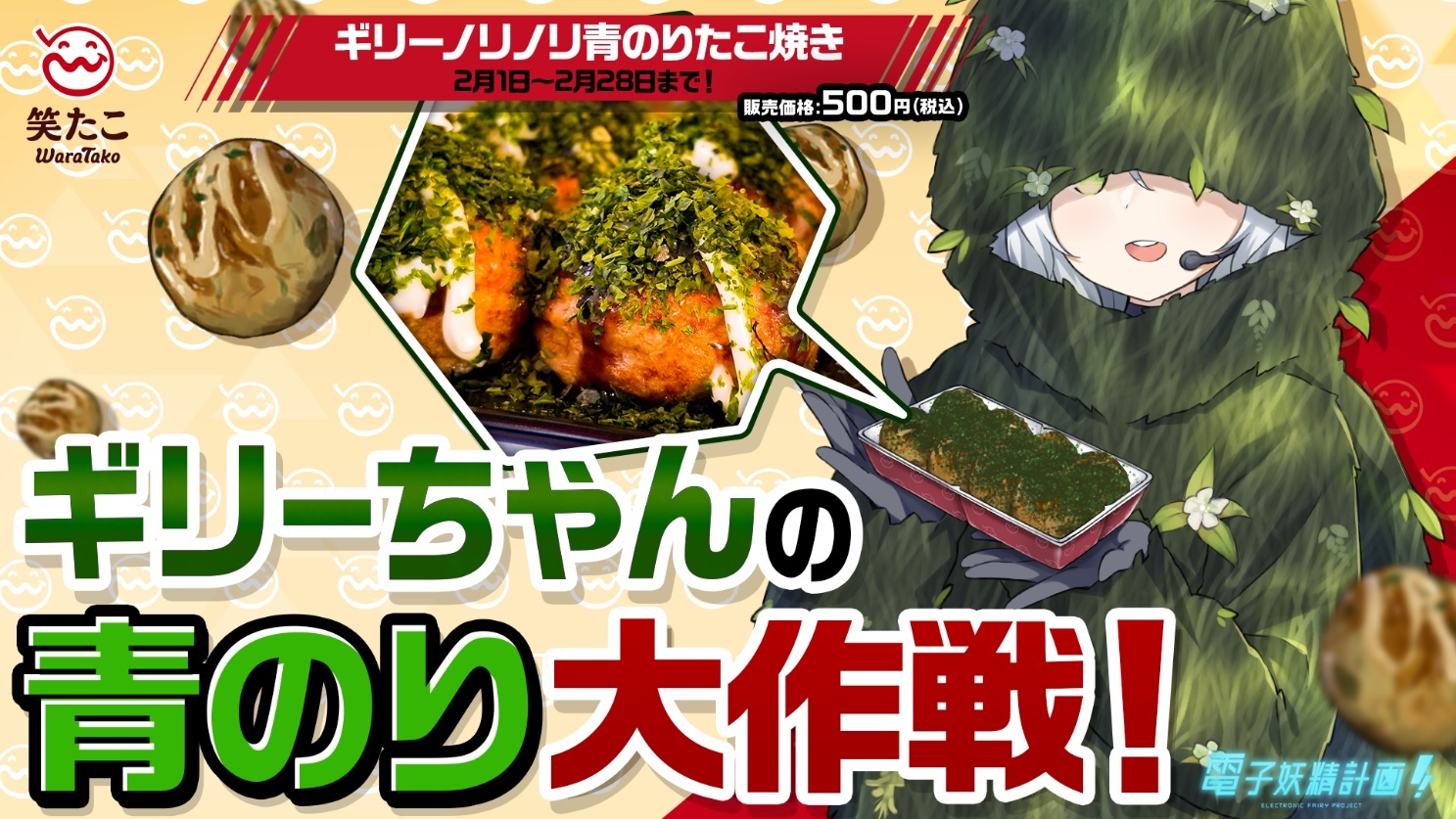 DELTA-Vは、次世代バーチャルプロジェクト「電子妖精計画」の「ギリーちゃん」が「笑たこ 原宿表参道店」のイメージモデルに就任したと発表した。コラボ期間は2月1〜28日で、期間中は限定コラボ商品が販売される。