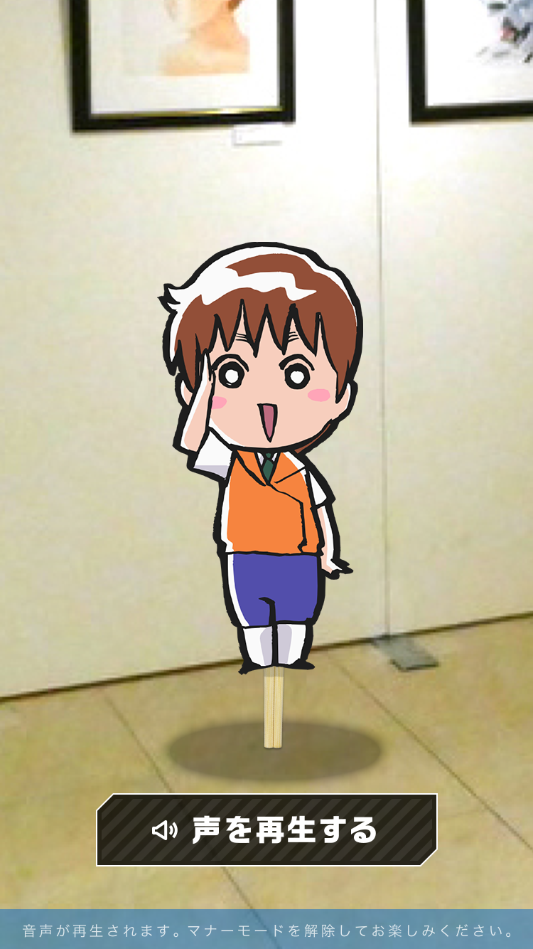 「WebAR音声ガイド」は、キャラクターが現実世界に飛び出してきたような演出とキャラクターボイスを合わせた新しい音声ガイド。AR機能を使い目の前に現れたミニパトのキャラクターを、アプリ不要でWebで見られると同時に、ボイス(泉野明/南雲しのぶ)も再生される。ボイスは2人で計18個のコメントを用意している。