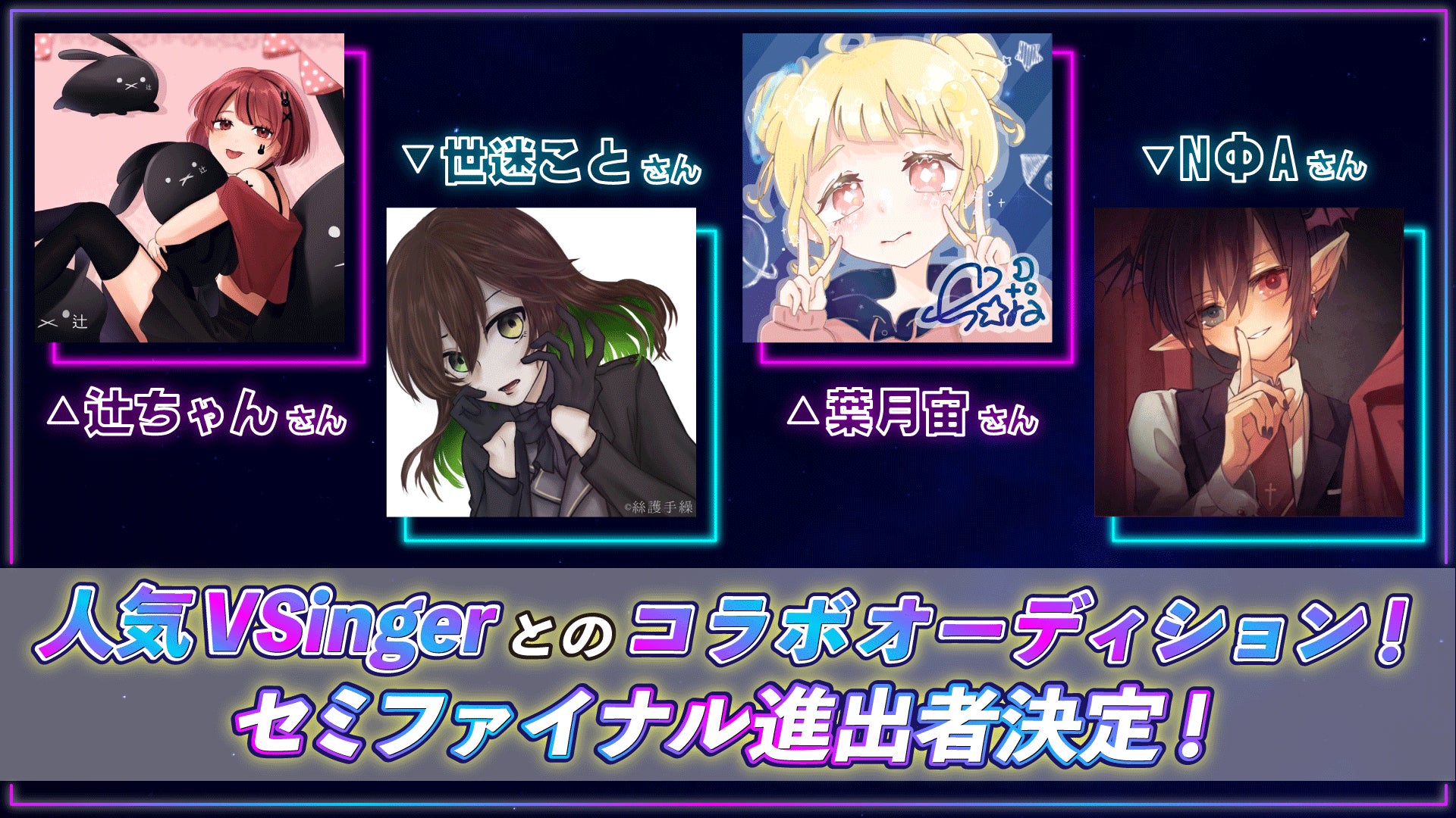 オーディション合格者2名には、合格者の希望に沿ったキャラクターを竹花ノート先生が描き下ろし、さらに有名VSinger達とのコラボレーション楽曲で世界配信デビューを特典としてご用意しています。そのほかにもMV制作など豪華特典が盛りだくさん。大注目の大型新人発掘オーディションです。