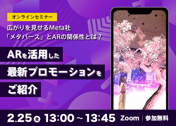 ARサービスを展開するアララ株式会社(本社:東京都港区、代表取締役社長:岩井 陽介、証券コード:4015、以下「アララ」)は、社会活動ができる新しい場所として注目を集めている「メタバース」や、メタバースを支える技術「AR」をテーマに、WEBセミナー「-広がりを見せる『メタバース』 ARとの関係性について- ARを活用した最新プロモーションとは?」を2月25日(金)に開催いたします。