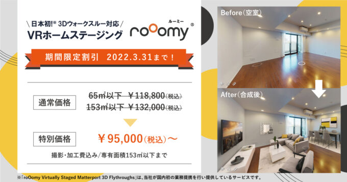 不動産売却のための空間演出等、住まいに関するサービスを提供するサマンサ・ホームステージングは、バーチャルホームステージング「roOomy」(ルーミー)のサービス提供について、期間限定の割引キャンペーンを実施すると発表した。