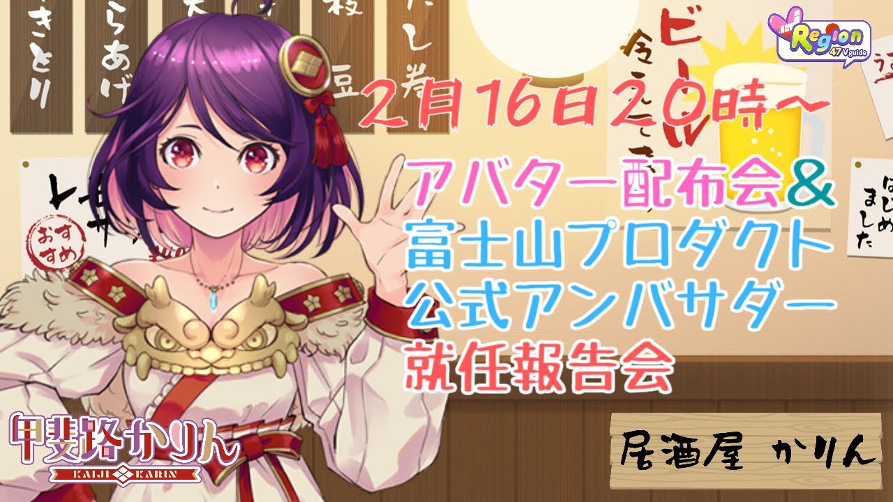 日本の都道府県を応援するために誕生した地方創生バーチャルタレントタレントグループ・VRegion(ぶいりーじょん)は、グループ所属の山梨県担当タレント・甲斐路かりん(かいじかりん)が、「青い富士山カレー」や「青い富士山ビール」などを手掛ける富士山プロダクトの公式アンバサダーとして認定されたと発表した。