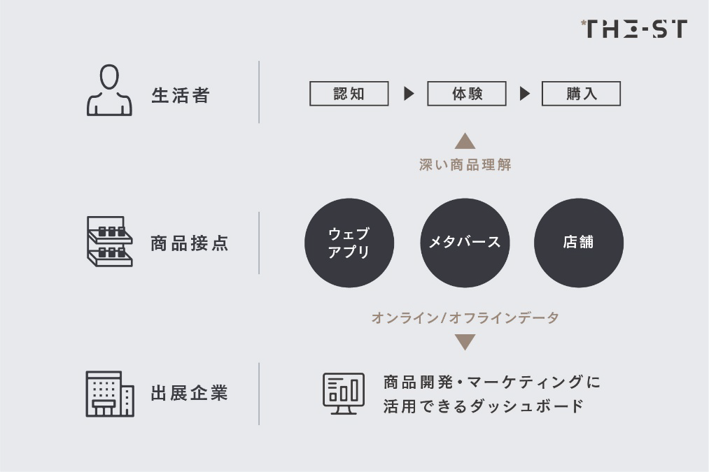 昨今、小売業界ではDX化がより求められている一方で、生活者は商品を実際に使用あるいは触ってみたい、企業は生活者との直接的接点を持ちたいなど、両者ともにリアルへの強いニーズを持っています。こうした背景を受け、ドコモは、生活者により深い商品体験を提供し、企業にはオンライン・オフラインの購買行動を可視化する「体験型店舗」を実現するRaaS領域の新たなソリューションとして「THE-ST」の開発を進めています。