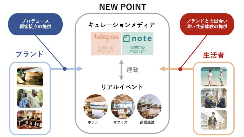 「NEW POINT」はこれまで生活者のシーンに合わせブランドをキュレーションし、オフラインとオンラインで生活者とブランドが深く交わるような場を創出してきました。感性を共にするブランドが集うSNSやリアルの場に、店舗づくりのノウハウや什器、販売スタッフをシェアできる仕組みを掛け合わせて、ブランドのファンづくりをデジタル・リアル両面で総合的にサポートしていきます。