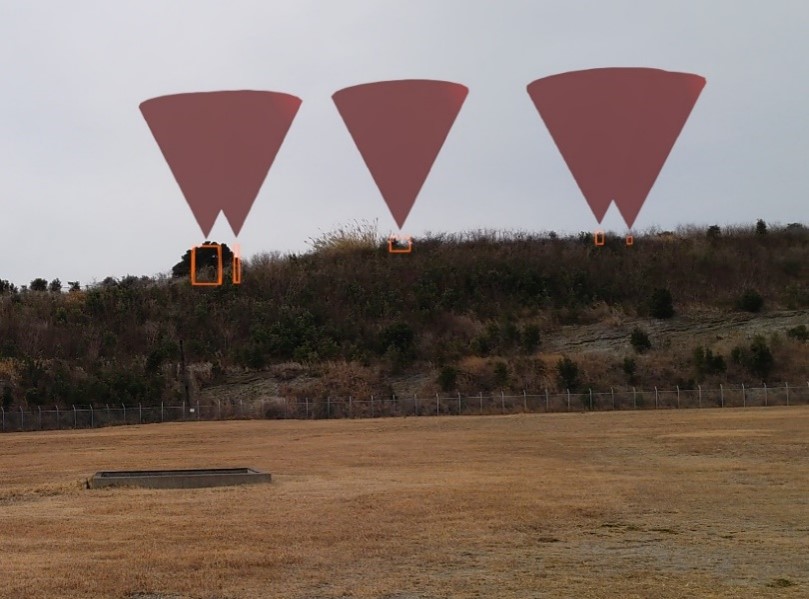 また、空港では、周囲の環境の中で高さ制限を超えるものがないか点検する業務がある。本プロジェクトでは、樹木など、高さ制限を超えたものの分析・検出結果をHoloLens 2に表示することで見落としを防ぐことが可能。