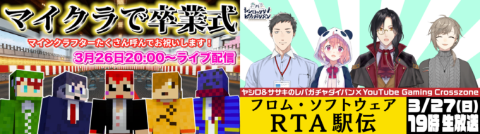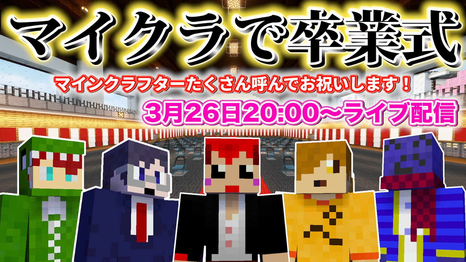 概要:コロナ禍で満足に卒業式が開催できなかった学生の方々のために、赤髪のともさんと一緒に、高校や大学を卒業をするクリエイターおよび、抽選で選ばれた今春高校や大学を卒業する一般の方々を招待して、マインクラフトの中で卒業式を実施。