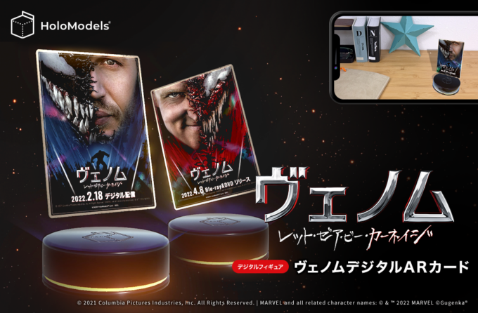 デジタルARカードはアニメデジタルフィギュアサービス「HoloModels」を使用しており、4月8日の「ヴェノム:レット・ゼア・ビー・カーネイジ」Blu-ray & DVD発売記念キャンペーンに合わせて配布する。