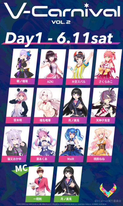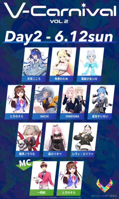V-Carnival実行委員会は、6月11・12日に開催するオンラインVTuberライブ「V-Carnival VOL.2」の出演アーティストを発表した。
