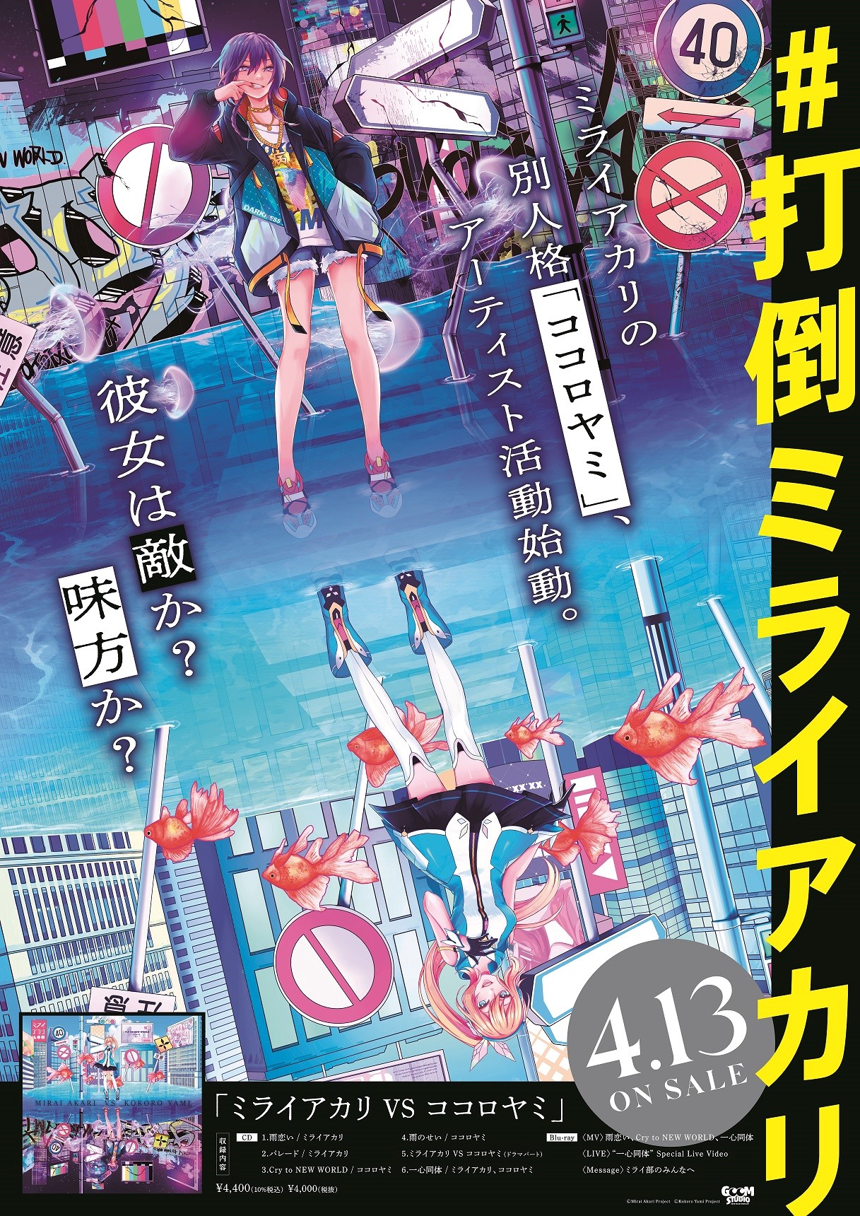 バンダイナムコミュージックライブは、VTuber四天王のひとりミライアカリと、ミライアカリの別人格としてデビューしたココロヤミによるミニアルバム「ミライアカリ VS ココロヤミ」を4月13日に発売する。