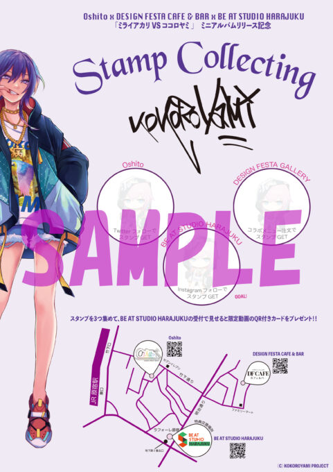 原宿で同時スタートとなる3つの企画「ココロヤミ in da house at BE AT STUDIO HARAJUKU」「デザインフェスタ DF CAFÉ カフェ&バー×ココロヤミ」「ミライアカリ VS ココロヤミ × Oshito」にて、合同スタンプラリーを開催。