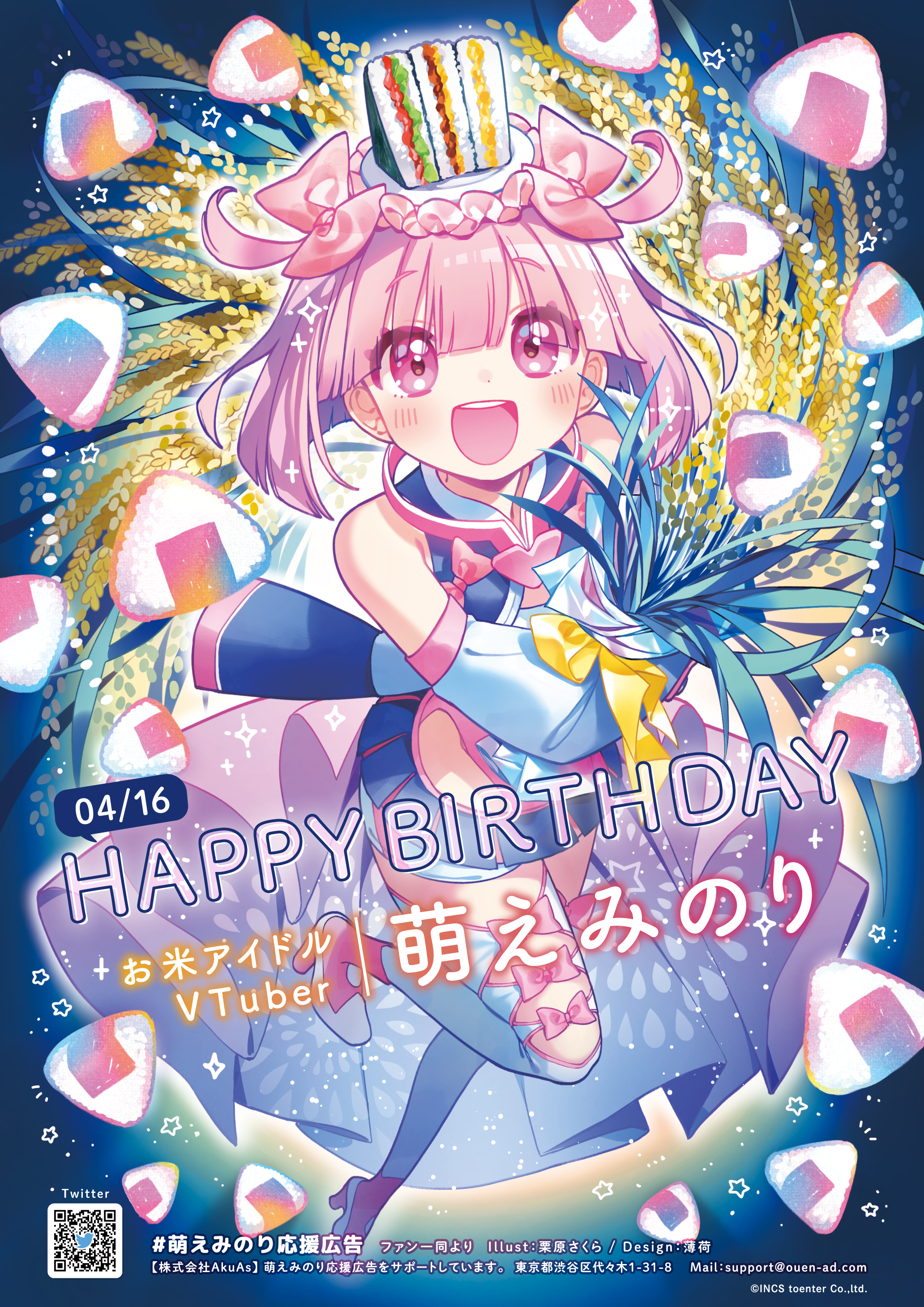 お米アイドルVTuber・萌えみのりのファンコミュニティー「萌えみのり応援広告企画」は、萌えみのりが4月16日に誕生日を迎えることを祝う応援広告ポスターを、本日4月11日より、東京メトロ丸ノ内線池袋駅、日比谷線秋葉原駅および、池袋オタク向け美容室「OFF-KAi!!IKEBUKURO」にて掲出すると発表した。
