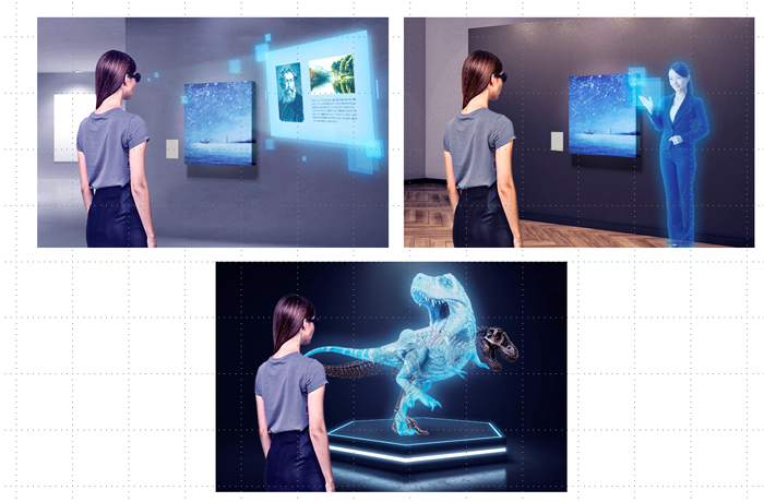 多言語の字幕・音声ならびに手話を用いた作品解説や、仮想空間を活用したARならではの鑑賞体験も実現できる。ARを生かした鑑賞体験では、例えば恐竜の骨格標本を見ながら、CGで表現された当時の姿をスマートグラスの中に投影することで、生きていた当時の姿を重ねて鑑賞するといったことが可能だ。主な特徴は下記の通り。