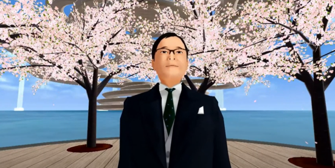 令和四年度に入学する合計6000名以上の生徒がオンラインで入学式に参加。司会はバーチャルアナウンサーである一翔剣(いっしょうけん)氏が務め、メタバース空間内に建設された隈研吾氏の設計によるVR校舎 「学びの塔」にて挙行された。