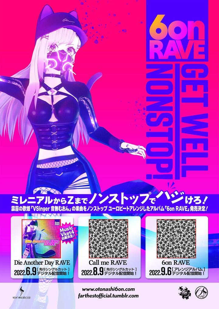 VSinger・音無むおんは9日、アレンジアルバム「6on RAVE」(むおんレイブ)を活動4周年となる9月6日に発売することを発表した。アルバムから2曲が先行シングルカットとして6月9日と8月9日にリリースする。
