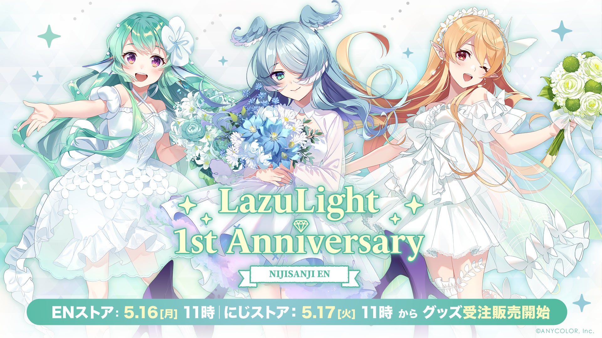 ANYCOLOR株式会社(本社:東京都港区 代表取締役:田角陸、以下「当社」)が運営するVTuber / バーチャルライバーグループ「NIJISANJI EN」は、5月12日に1周年を迎えるVTuberユニット『LazuLight』の「1st Anniversary Goods」を日本&英語圏にて、2022年5月17日(火)11時より同時受注を開始いたします。