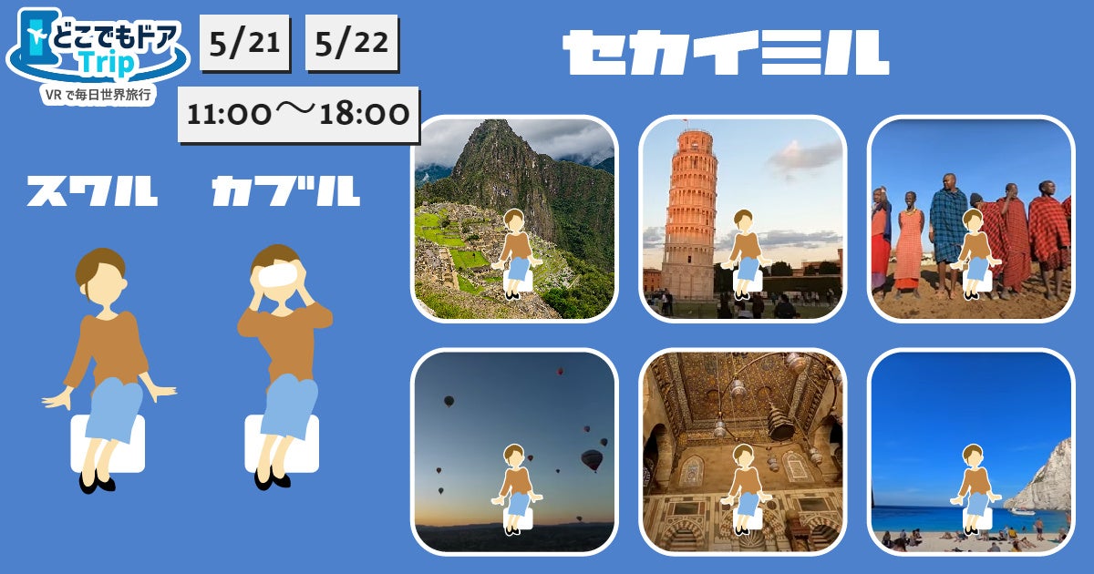 今回の体験イベントでは、「どこでもドアTrip」で人気の「セカぶらコース」から選りすぐりのシーンをまとめた5~10分のショート版を、事前予約なしで誰でも無料で体験いただくことができます(年齢によって使用するVRゴーグルが異なります)。