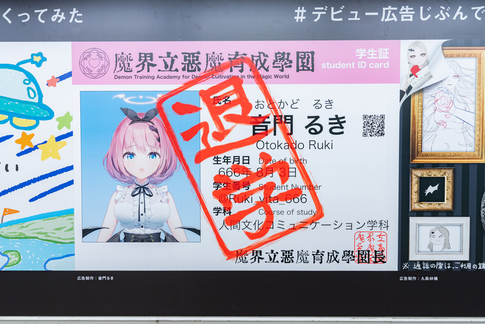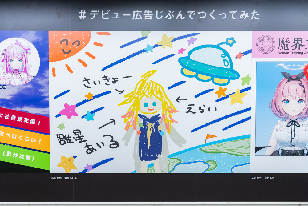 第1弾バーチャルタレント「Dev-a」のデビュー/加入を記念して、本日より東京メトロの新宿駅と新宿三丁目駅方面をつなぐ地下通路「メトロプロムナード」内に交通広告を掲載した。タレント5名が自ら手がけたデザインで、5月29日まで掲載する。