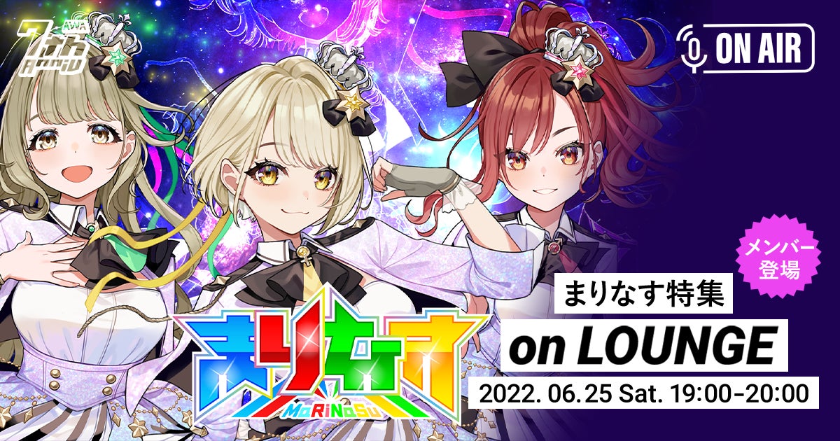 AWA株式会社(本社:東京都港区、代表取締役CEO:冨樫晃己)が運営する、サブスクリプション型(定額制)音楽ストリーミングサービス「AWA(アワ)」は、2022年6月25日(土) 19:00~20:00の1時間に渡り、無料で参加できるオンライン空間「LOUNGE(ラウンジ)」で、バーチャルアイドルグループのまりなすが音声とチャットで参加する、ラジオ配信ラウンジを開催いたします。